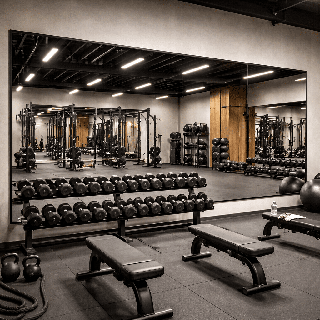Custom mirrors can enhance the functional value of a gym or fitness studio, providing a modern and sleek look.Our custom mirrors can be designed to fit any shape or size, providing a unique and personalized solution for your gym or fitness studio.