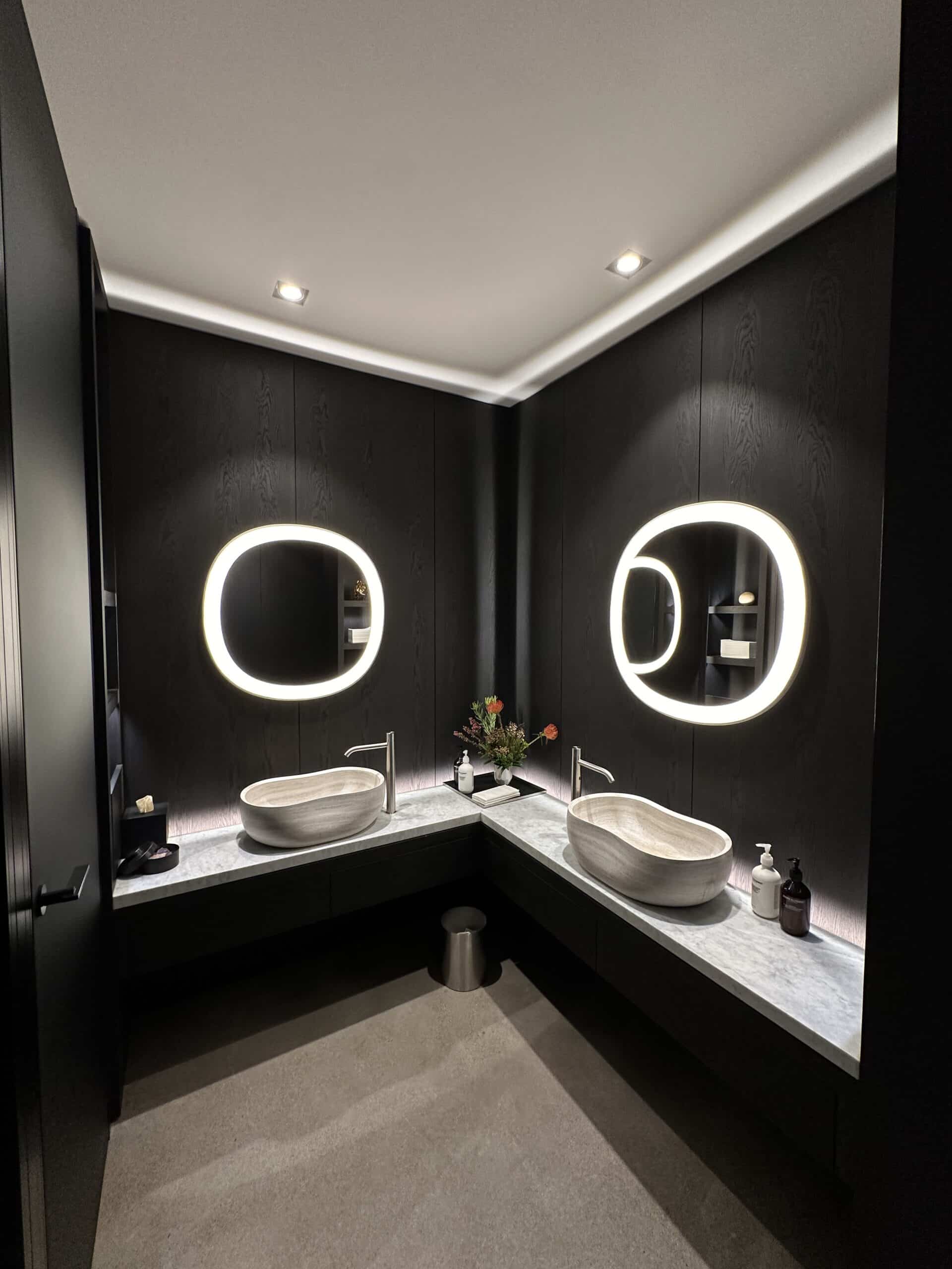 LED mirrors can add a modern and sleek touch to your bathroom, providing a unique and futuristic look.Our custom LED mirrors can be designed with various LED lighting options, providing a personalized and high-tech experience.