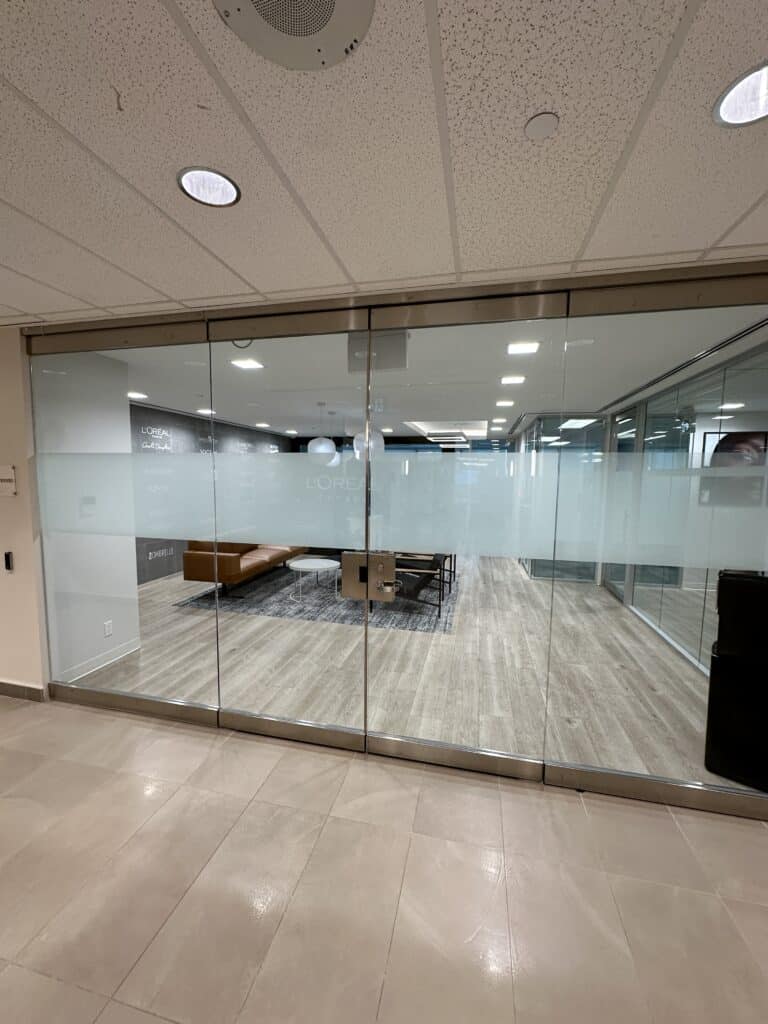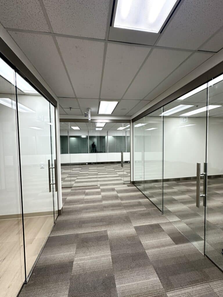 Using premium tempered safety glass and minimal hardware, the installation allows natural light to flow throughout the space, resulting in a bright, clean, and professional environment. Low Iron Glass managed the project from measurement through installation, delivering precise detailing, smooth coordination, and a high-quality finished result.